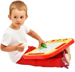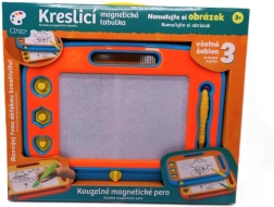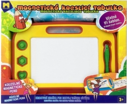 Magnetna risalna tabla je idealna izbira za male umetnike doma in na poti. S čarobnim magnetnim peresom in tremi žigi bodo otroci uživali ure ustvarjanja brez potrebe po papirju in barvicah. Z enim samim premikom brisalne letvice slika izgine in površina je pripravljena za novo mojstrovino.
