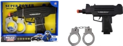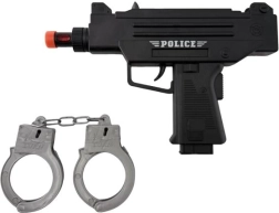 Zabaven komplet policijske opreme za otroke, ki vsebuje policijsko pištolo in lisice. Odlično za igro policista, razvoj domišljije in igro vlog doma in na prostem.