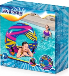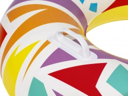 Napihljiv obroč Bestway Geometric je odlična izbira za počitek ob morju, jezeru ali v domačem bazenu. Zaradi velikega premera 107 cm je primeren za uporabnike od 12 let dalje in odrasle. Trpežni materiali, varnostni ventili in čvrsti ročaji zagotavljajo udobno in varno vožnjo po valovih.