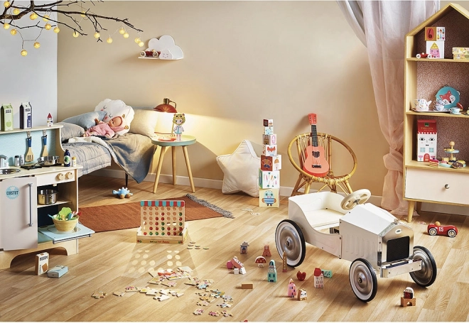 Ta stilska otroška čajna garnitura VILAC bo navdušila male gostitelje in goste. Kovinski jedilni komplet z igrivimi ilustracijami SUZY ULTMAN je lahek, vzdržljiv in odlično ustreza otroškim rokam. Glavna zvezda je glasbeni čajnik, ki ob nagibu zaigra veselo melodijo »Vse najboljše« – vsako druženje spremeni v malo praznovanje.