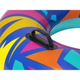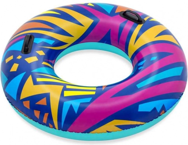 Uživajte v poletju z napihljivim obročem BESTWAY s premerom 107 cm z barvitim geometrijskim vzorcem in dvema ročajema za zanesljiv oprijem. Izdelan je iz vzdržljivega, predhodno preizkušenega vinila z varnostnim ventilom, idealen za sprostitev ob bazenu in na plaži.