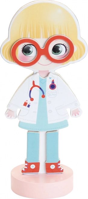 Oblecite Mio v različne opravke in pustite domišljiji prosto pot! Ta 22 cm visoka lesena magnetna punčka ponuja do 36 kosov oblačil in dodatkov, ki jih zahvaljujoč magnetom preprosto pritrdite. Igra podpira fino motoriko, kreativnost in igranje vlog – idealno darilo za otroke od 3 let naprej.