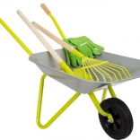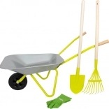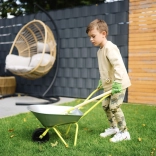 Idealni komplet za majhne vrtnarje! Ta otroški samokolnik ima prostornino približno 10 litrov in je opremljen z bombažnimi rokavicami, lopato in grabljami, ki otrokom omogočajo enostavno pomoč pri delu na vrtu.