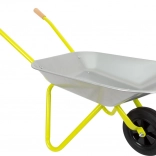Samokolnik iz nebarvane kovine z lesenimi ročaji zagotavlja dolgo življenjsko dobo in stabilnost pri vsakem vrtnem delu.