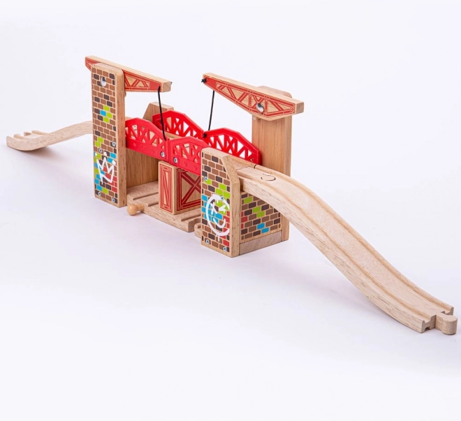 Dvojni dvižni most Bigjigs Rail je čudovit dodatek k vsakemu svetu vlakov. Obe strani mostu je možno dvigniti, kar omogoča gladko prečkanje vlakov, ali pa jih lahko spustite za prečkanje po vrhu mostu.