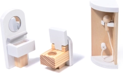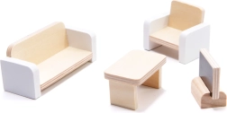 V paketu najdete 16 kosov pohištva: mizo, stole, posteljo, svetilko, naslanjač, zofo, klubsko mizico, televizor, klavir, klop, ležalnik, sončnik, prho, umivalnik in stranišče.
