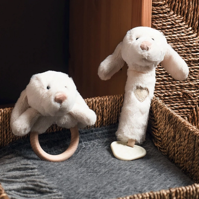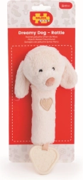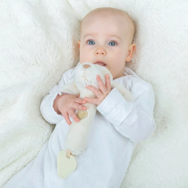Ta vsestranska mehka igračka v podobi kužka ponuja otrokom kar tri doživetja v enem: nežno ropotanje za spodbudo sluha, zabavno piskanje ob stisku in teksturirano grizalo za olajšanje ob izraščanju zobkov. Nevtralen naravni ton se poda k vsaki opremi za dojenčka.