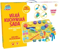 Odkrijte ustvarjalni svet z otroškim kompletom Modelo – velika kuhinjska set s podlogo in 31 kosi dodatkov, dopolnjena s 6 lončki plastelina v osnovnih barvah. Otroci lahko režejo, oblikujejo in okrasijo svoje stvaritve, medtem ko podloga ščiti mizo in ohranja red. Odlično za razvoj fine motorike, ustvarjalnosti in domišljije.