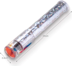 V pakiranju najdete vse, kar potrebujete za izdelavo delujočega kalejdoskopa dolžine približno 25 cm. Zahvaljujoč zamenljivim polnilom in okraskom lahko otroci ustvarjajo edinstvene vzorce iz kroglic, bleščic in barvnih diskov. Odlično za razvoj fine motorike, domišljije in osnovnih optičnih principov.