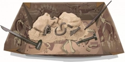 Doživite prave izkope. Mavčni blok skriva posamezne dele okostja, ki jih otroci razkrijejo s pomočjo priloženih orodij.