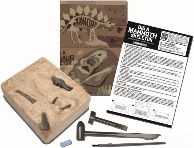 Ta interaktivni izkopavalni set bo vašo mizo spremenil v majhno paleontološko najdišče. S priloženim dletom in čopičem otroci previdno razkrivajo posamezne kosti ter iz njih sestavijo podroben model okostja mamuta. Zabava se poveže z učenjem, končni rezultat pa je impresiven eksponat za otroško sobo.