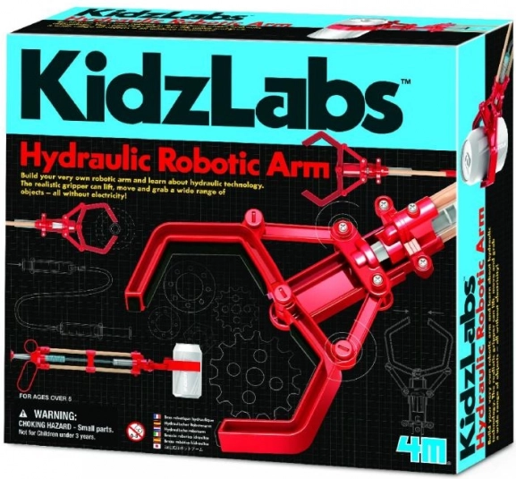Odkrijte, kako deluje hidravlika v praksi. Iz kompleta delov sestavite delujočo robotsko roko, ki jo upravljate z brizgalkami in vodo. Vsak gib roke in klešč je gladek in natančen, zato boste zlahka prijeli in prenesli drobne predmete – vse to brez elektronike.