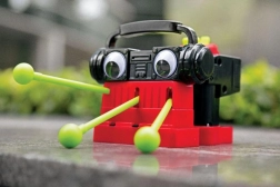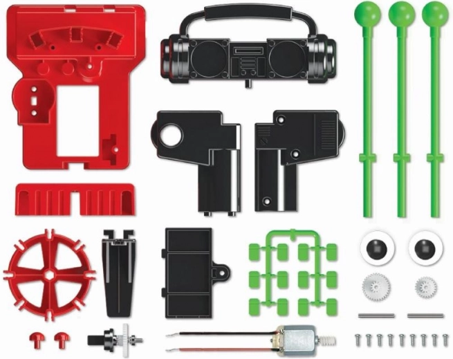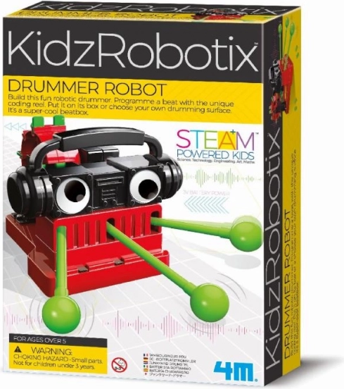 Komplet vsebuje barvne plastične dele in zelene palice, ki jih je mogoče sestaviti v robota, ki lahko igra na bobne. Proces montaže spodbuja logično razmišljanje in ročne spretnosti, kar je odličen način za povezovanje zabave z učenjem.