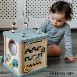 Nežne pastelne barve in gladka obdelava vabijo k ponovnemu igranju, medtem ko raznolike dejavnosti spodbujajo različne veščine – od fine motorike do jezikovnega razvoja. Certifikat FSC zagotavlja odgovoren izvor lesa in odgovorno proizvodnjo.