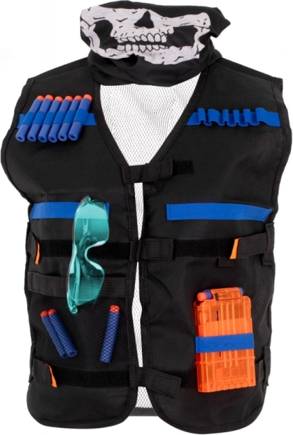 Ta lahek taktični telovnik vsako igro z izstreljevalnikom penastih puščic spremeni v še več zabave. S praktičnimi pritrdilnimi zankami, elastičnimi trakovi, žepom za puščice in držalom za nabojnik boste imeli municijo vedno pri roki, akcija pa lahko poteka brez prekinitev.