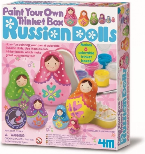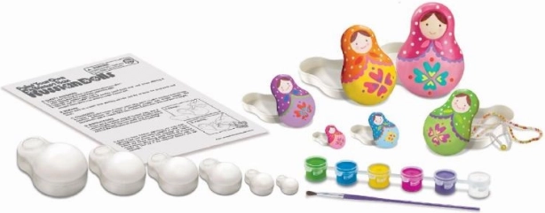 Odkrijte veselje ustvarjanja s kreativnim setom, v katerem lahko pobarvate 6 prikupnih matrjošk. Končane punčke služijo kot izvirne škatlice za drobnarije in hkrati kot okras v otroški sobi.