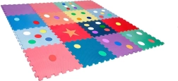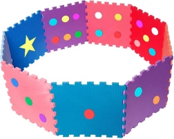 Žive barve in oblike (pikice, zvezda) spodbujajo čutno zaznavanje ter razvoj fine in grobe motorike. Pena duši udarce in ščiti pred mrazom tal.