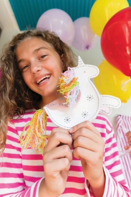S tem ustvarjalnim kompletom si otroci preprosto sešijejo lastno denarnico samoroga iz trpežnega tekstilnega materiala, ki spominja na umetno usnje. Deli so vnaprej preluknjani za lažje predevanje niti, zato si otroci varno osvojijo osnovne tehnike šivanja in na koncu dobijo praktičen dodatek, v katerega shranijo drobnosti.