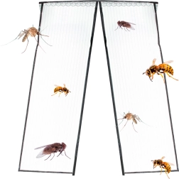 Uživajte v zračenju brez neželenih obiskovalcev. Fina mrežica prepušča svetlobo in zrak, hkrati pa preprečuje vlet muham, komarjem in drugemu mrčesu. Dva dela se na sredini spojita z magneti, zato se po prehodu sama zapreta – idealno za dom, balkon ali teraso.