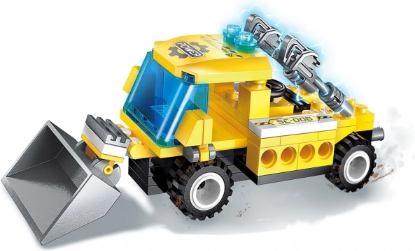Ta barvit komplet gradbene mehanizacije prinaša otrokom in staršem veliko možnosti za igro in ustvarjanje. Vsak od osmih modelov ponuja premične dele in igralne funkcije; skupaj pa ustvarijo impresiven velik stroj, ki gradbene komplete povzdigne na višjo raven. Vzdržljivi deli iz ABS plastika zagotavljajo dolgo življenjsko dobo in tekoče sestavljanje.