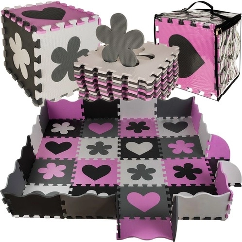 Podlogo lahko sestavite na ravno (pribl. 140 × 140 cm) ali ustvarite ograjo s pomočjo stranskih letvic in kotnikov. Material EVA je vodoodporen in enostaven za čiščenje – dovolj je obris z vlažno krpo. Komplet je dobavljen v praktičnem prenosnem etuiju, zato ga zlahka vzamete s seboj na obisk ali pospravite, ko ni v uporabi.