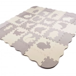 Mehka otroška podloga iz penastih sestavljank z odstranljivimi oblikami ustvari varen in ustvarjalen prostor za igro. Zahvaljujoč zvišanim robovom lahko sestavite ograjen prostor, ki zadrži igrače v notranjosti. Podloga je vodoodporna, ima proti-zdrsno površino in odlično blaži udarce, zato je idealna za prve korake. Nevtralna barva siva in ecru se poda v vsak interier.