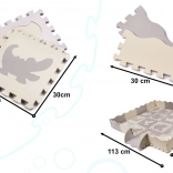 Velikoformatni penasti deli z odstranljivimi živalskimi oblikami podpirajo učenje oblik, ustvarjalnost in fino motoriko. Iz delov preprosto sestavite ravno podlogo ali ograjen prostor z zvišanimi robovi, ki določi varno območje za igro. Teksturirana površina je prijetna na dotik in ne drsi.