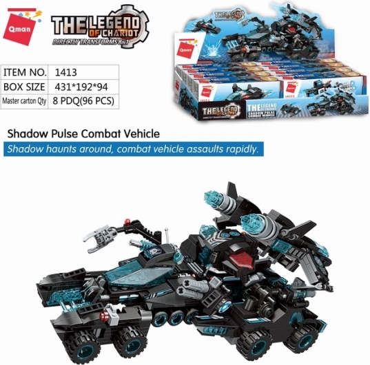 Konstrukcijska igrača Qman Shadow Pulse ponuja možnost kreativnega sestavljanja iz 714 kosov. Vsaka od 8 konstrukcijskih igrač lahko služi kot samostojen model ali pa se priključi drugim za sestavo velikega bojnega vozila. Ta konstrukcijska igrača, izdelana iz visokokakovostne in trpežne ABS plastike, je kompatibilna z Lego, Sluban, Cobi in ostalimi. Vsak del seta je posebej zapakiran v pisane škatlice, kar prinaša lahkotnost shranjevanja in organizacije.