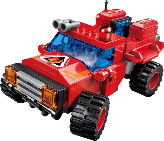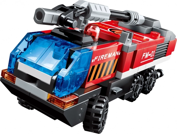 Sestavite različna gasilska vozila in helikopter za reševalne misije, gašenje ter evakuacijo. Idealno za napete zgodbe in ekipno igro.