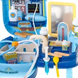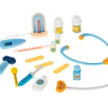 Zdravniški komplet vsebuje vse potrebne pripomočke za igro zdravnika, kot so stetoskop, termometer, injekcijska brizga in drugi.
