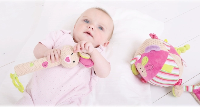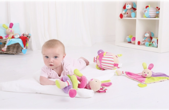 Ta pisana tekstilna žoga prinaša v otroški svet veselje in odkrivanje. Ustvarjena je z namenom podpirati čutni in motorični razvoj dojenčkov. Otroke bodo očarale različne teksture in barve, ki jih žoga ponuja.