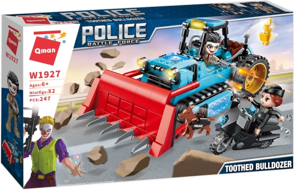 Akcijska sestavljanka Qman Police Battle Force prinaša napeto zasledovanje z zločincem in njegovim nevarnim buldožerjem. Set ponuja 247 koščkov, 2 figurici in premično lopato. Je združljiv z drugimi sestavljankami, izdelan iz vzdržljive in neškodljive plastike ABS ter odlično razvija ustvarjalnost in fino motoriko otrok od 6 let naprej.