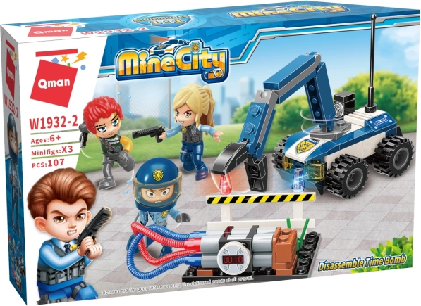 Komplet Qman MineCity vam nudi avanturo, polno napetosti in zabave. Kombinirajte dele in ustvarite policijsko vozilo, ki vam pomaga pri nevtralizaciji nevarne bombe. Set podpira razvoj fine motorike in logičnega razmišljanja otrok.
