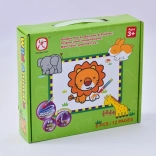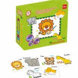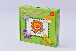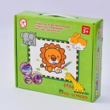 Vstavljanka Živali in vodne barve je idealna kombinacija za razvoj domišljije in fine motorike. Otroci se lahko veselijo šestih različnih slik – zajec, slon, žirafa, lev, zebra in tiger.