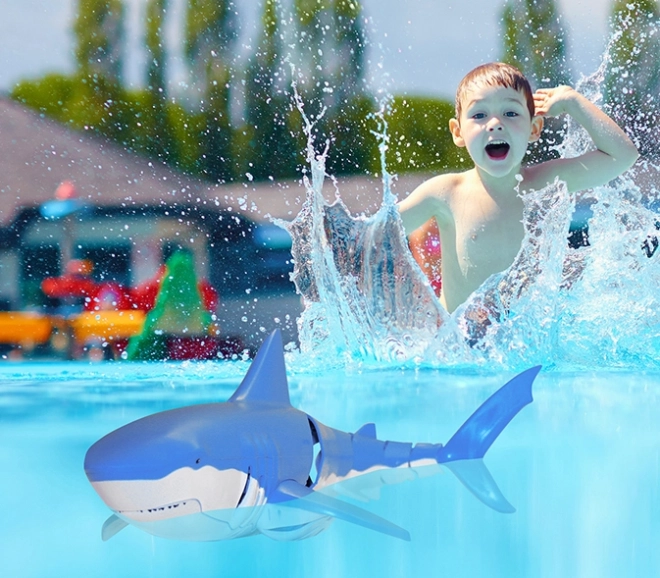 Ta morski pes je izdelan iz plastike in zasnovan tako, da izgleda kot prava žival. Idealen je za zabavo v bazenu.