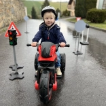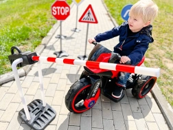 Otroci si na igriv način osvojijo osnovne prometne znake in varno vedenje v prometu med igro na prometnem igrišču.