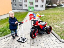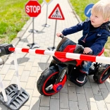 Set odlično dopolni vožnjo s poganjalci, avtomobili na pedala ali otroškimi motorji ter spodbuja domišljijo in motoriko.