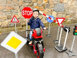 S setom otroških prometnih znakov boste vsak prostor spremenili v zabavno in poučno prometno igrišče. Zaradi višine 81 cm so znaki dobro vidni in stabilni, zato so primerni za uporabo v notranjih prostorih in na prostem. Preprosta sestava omogoča, da z igro začnete v trenutku.