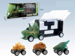 Odkrijte edinstven dinozavrski tovornjak, ki razveseli vsakega otroka s kombinacijo sveta dinozavrov in avtomobilov. Vlačilec v obliki dinozavra navduši na prvi pogled, priloženi 3 avtomobilčki na vzvratni pogon pa poskrbijo za dinamično igro doma ali na poti.
