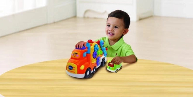 Servisni avto Tut Tut znamke VTech je idealen spremljevalec za otroke, ki želijo uživati v zabavi in se hkrati učiti. Igrača lahko prevaža do štiri majhne avtomobilčke Tut Tut in je polna interaktivnih elementov, ki razvijajo motorične spretnosti in domišljijo. Zahvaljujoč kontaktnim točkam »Smart point« predvaja tri pesmice in zna vrsto zabavnih fraz, kar pomaga razvijati besedni zaklad otrok.