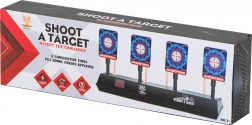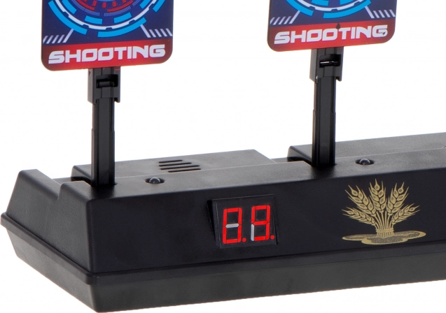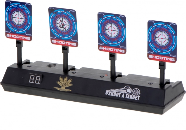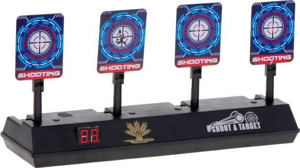 LED zaslon jasno šteje točke, po zadetku vseh štirih ciljev pa se tarče same dvignejo – igra se tekoče nadaljuje brez ročnega nastavljanja.