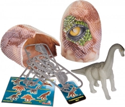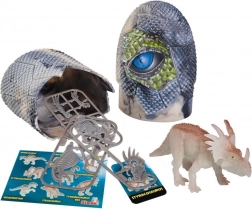 Ta zabavna figurica dinozavra v jajcu prinaša veselje ob odkrivanju tako otrokom kot odraslim. Vsako jajce skriva podrobno izdelano 10 cm figurico, mini sestavljanko dinozavrovega skeleta in elegantno zbirateljsko kartico. Dinozaver sveti v temi, zato navdušuje tudi po ugašanju luči.