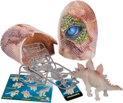Odkrijte presenečenje v vsakem jajcu! V notranjosti najdete 10 cm figurico dinozavra, sestavljanko skeleta in zbirateljsko kartico. Dinozaver sveti v temi, izbirate lahko med 8 različnimi vrstami – odlično darilo za male paleontologe in zbiratelje.
