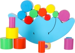 Ta lesena ravnotežna igra preizkuša potrpežljivost in spretnost celotne družine. Naloga je na nihajoči meseček polagati čim več barvnih valjčkov tako, da ne padejo. Igra je preprosta za razumevanje, a presenetljivo napeta – vsak dodaten košček spremeni ravnotežje.