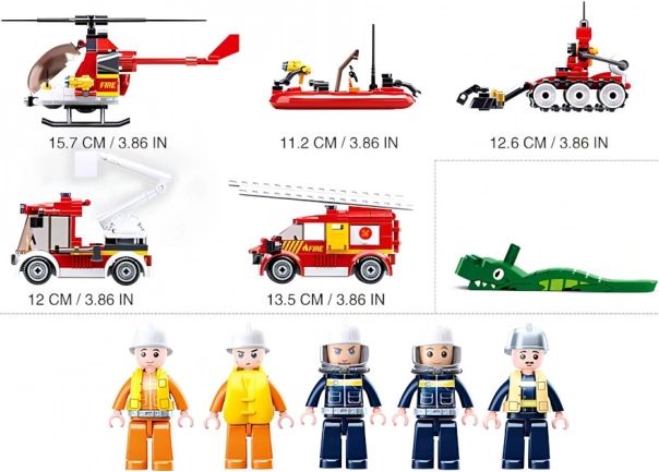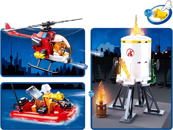 S tem kompletom lahko ustvarjate dinamične prizore gasilskih akcij. Izdelan je iz kakovostne plastike ABS, ki je trpežna in varna. Set vsebuje 490 koščkov in 5 edinstveno oblikovanih figur z vrtljivimi in nihajnimi deli telesa.