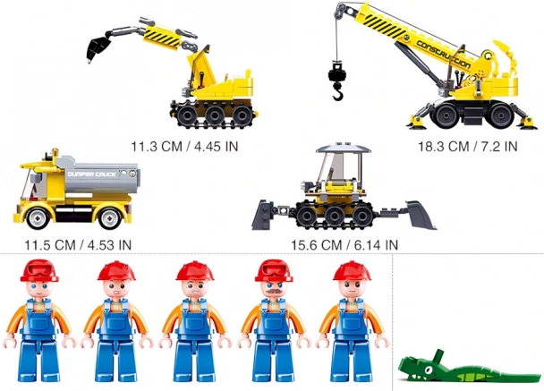 Sluban Gradbišče vsebuje vse potrebne elemente za ustvarjanje polno funkcionalnega gradbišča s 465 deli.