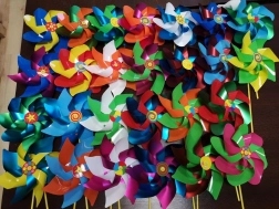 Vrtavka v različnih barvnih izvedbah, pošiljamo naključno. Velika vrtavka (mešanica barv) za veselje otrok, pričara nasmeh na vsakem otroškem obrazu. Primerna za igro doma in kot dekoracija za vrt ali v cvetlični lonec. Izboljšana kakovostna konstrukcija za dolgotrajno delovanje. Gred je opremljena z dodatnim cevnim ohišjem, ki zagotavlja dolgotrajno vrtenje. Vrtavka je izdelana v EU. Skupna dolžina s palico je 50 cm. Glavne lastnosti: skupna dolžina s palico 50 cm, primerna dekoracija za dom in vrt.
