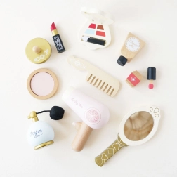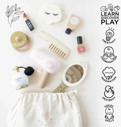 Ta čudovit komplet iz kolekcije Honeybake znamke LE TOY VAN ponuja otrokom avtentično izkušnjo ličenja in urejanja pričeske. Tekstilna torbica iz naravnega bombaža skriva lesene dodatke z zaobljenimi robovi, lakirane z netoksičnimi barvami na vodni osnovi. Odlično za male vizažiste in vizažistke, ki želijo ustvarjati varno in z domišljijo.