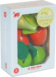 Šest kosov sadja s filcanimi listki v leseni zabojčki z ročaji. Idealna velikost za majhne otroške roke in veliko tematske zabave.