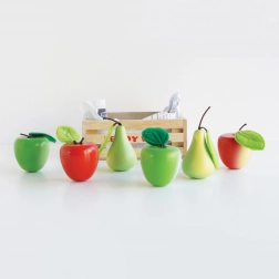 Lesena zabojčka z jabolki in hruškami iz kolekcije HONEYBAKE otrokom prinaša realistično igro trgovine, kmečke tržnice ali kuhinje. Vsak kos sadja ima filcano peclje in všit listek za avtentičen videz. Zabojčka ima praktične ročaje za enostavno prenašanje.
